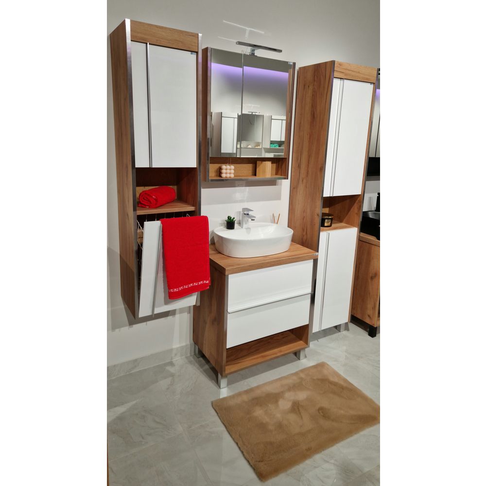 Okov: Ambijetalno LED osvetljenje, šarke sa usporivačem, metalna ručka visokog sjaja, metalne nogice visokog sjaja.