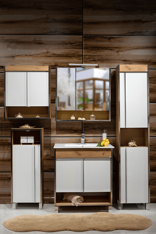 Front: Kvalitetni MDF u beloj boji visokog sjaja sa ABS kantom ili ogledalo.